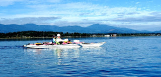 We paddled from the shipwrecks across the shallow waters of the Puntledge River estuary then pushed a short distance upstream against the current. The estuary is a haven for salmon fry and small fish that thrive in waving eel grass that provides food and shelter for them. Only one large chinook salmon was seen. A paddler who had been fishing upstream two days previously commented the river was full of pink and chinook salmon heading upstream in their final push to spawn. At least a dozen seals were counted in the river mouth - looking hungry for salmon.